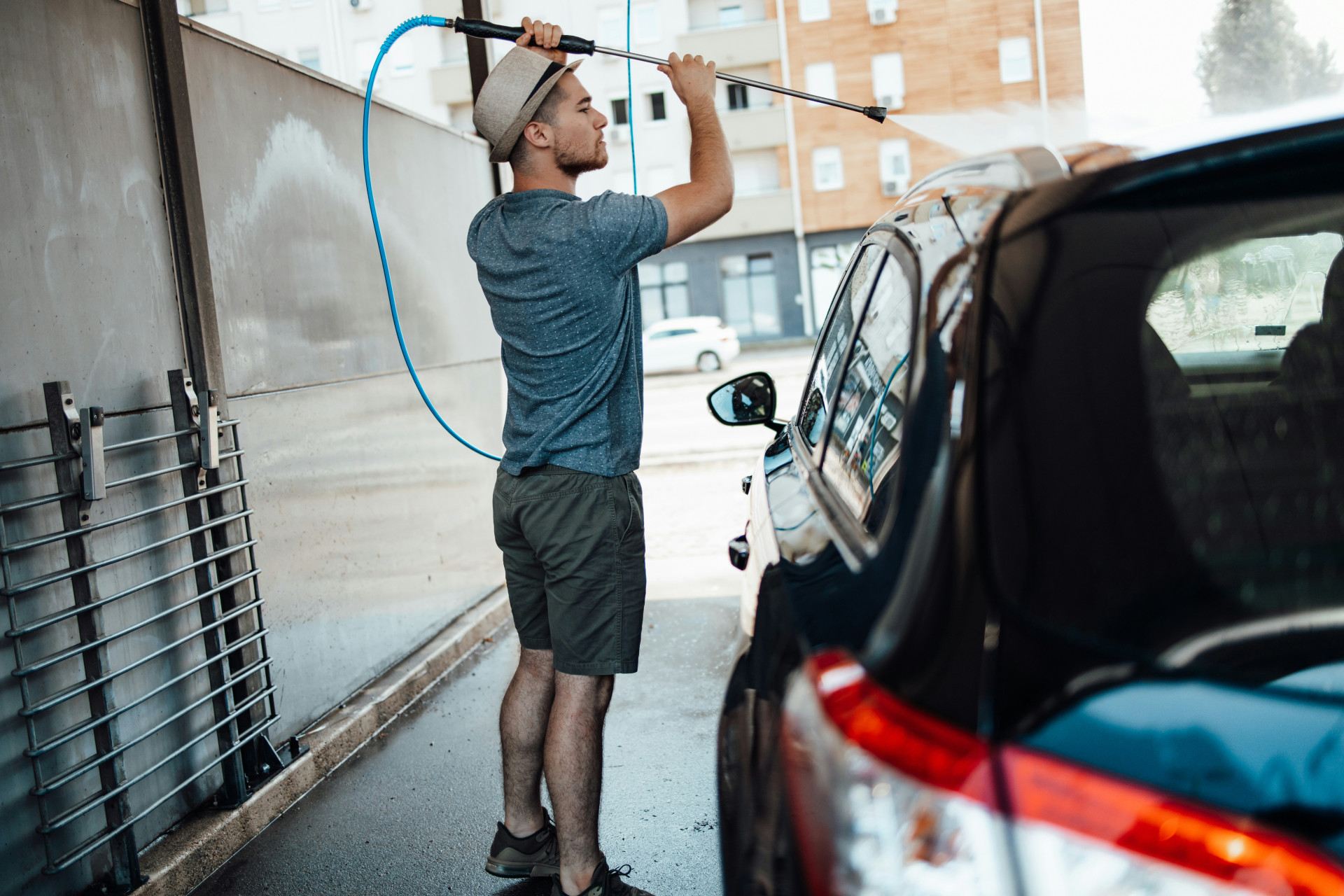 Hold altid en passende afstand til det, du rengør, og start med lavt tryk. Brug brede dyser til sarte overflader som træ og bilkarrosseri, og undgå at rette strålen direkte mod fuger eller maling.